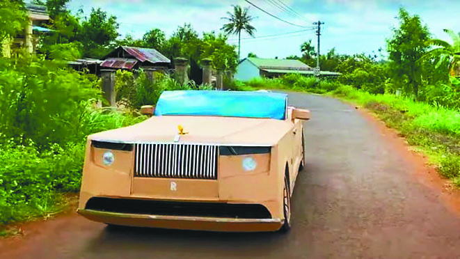 「King of Crafts」用紙箱打造勞斯萊斯,還真的能開上路。圖/取自網路