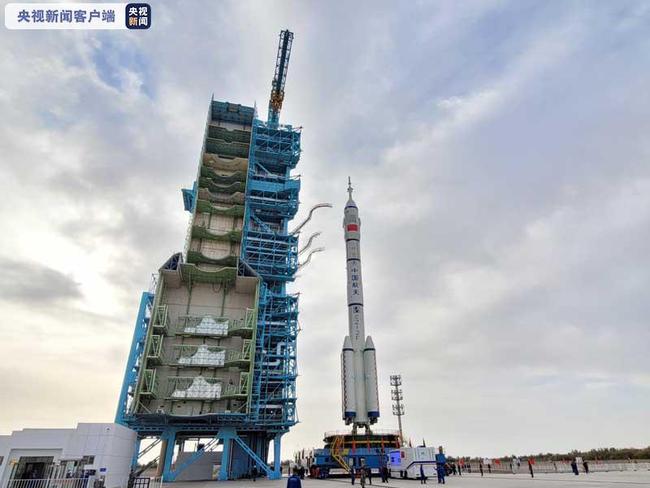 神舟十三號船箭組合體已轉運至發射區,運送第二批三名太空人,前往自主建設的「天宮號」太空站。圖/取自央視新聞
