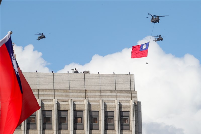 至於5日進行全兵力預演時,其中1架吊掛巨幅國旗的CH-47直升機,起飛後發現旋翼出現異音,飛返空軍松山指揮部,今天2個混合編隊都順利飛越總統府前廣場上空。