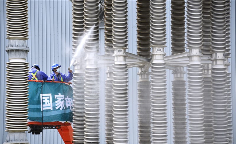 圖為北京市電力公司延慶換流站員工日前在清洗絕緣立柱。圖╱新華社