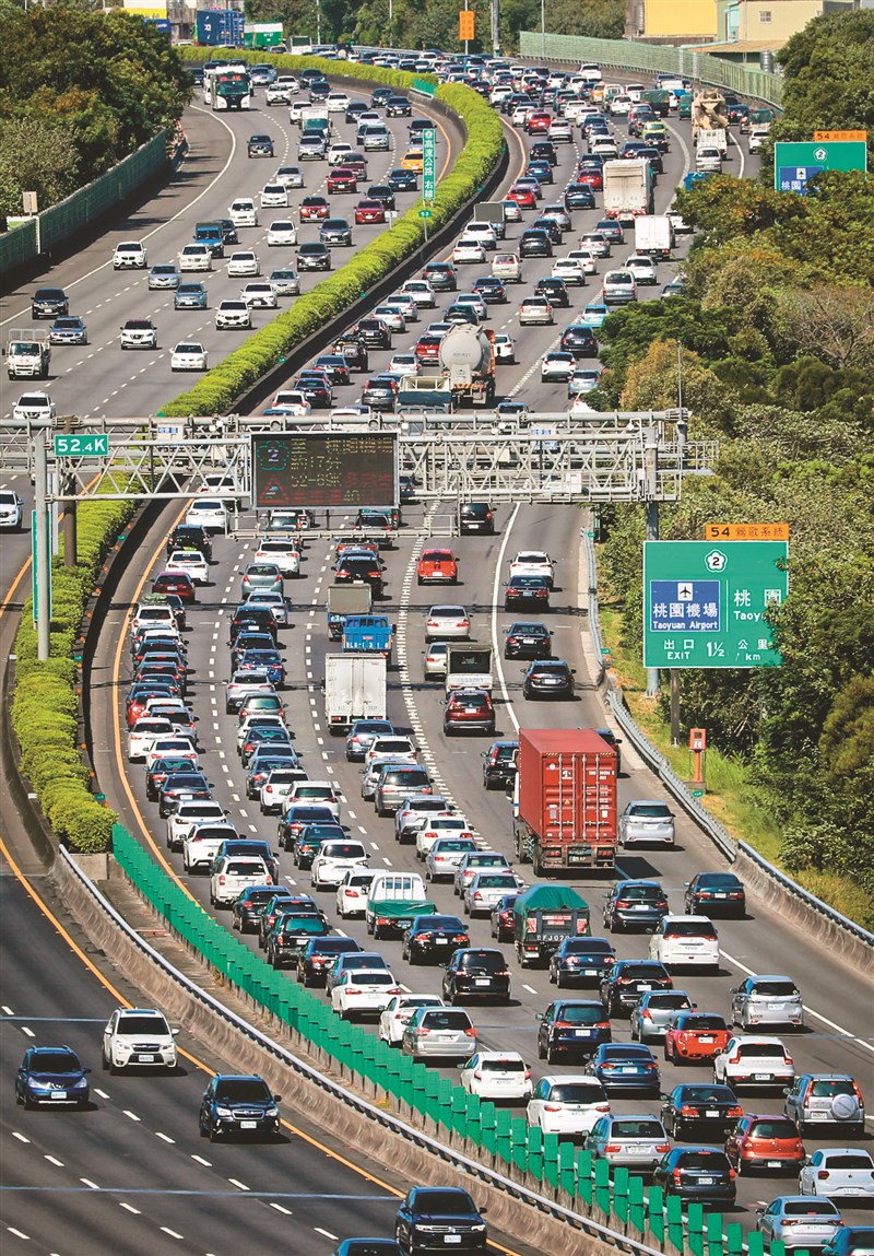 昨日是國慶連假首日,一早國道部分路段出現車潮,國道3號南下車多壅塞,車輛大排長龍。圖╱中央社