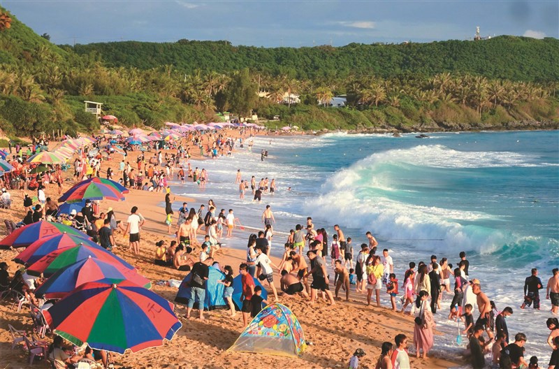 國慶連假,屏東墾丁沙灘上滿是踏浪人潮。圖╱潘欣中