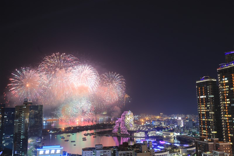 蔡英文出席致詞表示,經過20年努力,高雄已成為美好的宜居城市,也是南台灣科技走廊重要一環;國慶煙火在高雄,請大家見證高雄嶄新面貌。