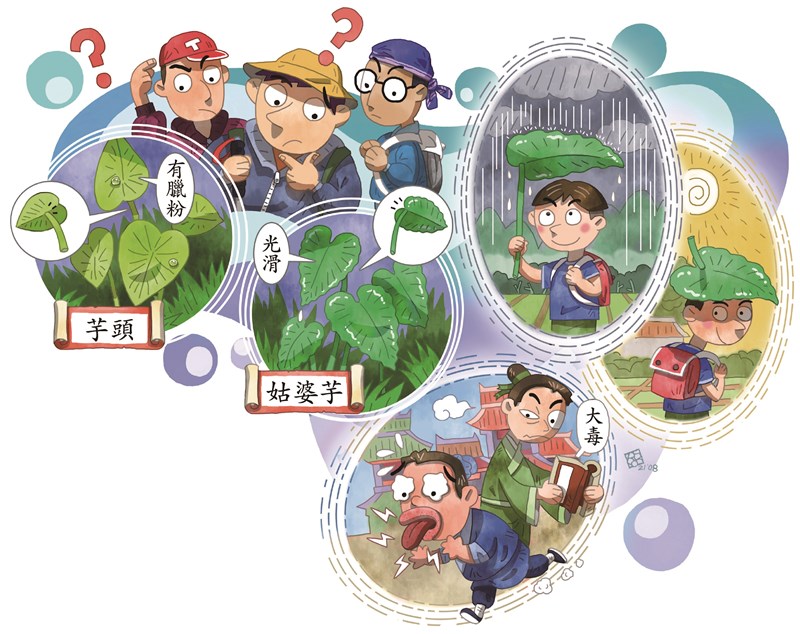 下次同學到野外,除了路邊的野花別亂採外,對於路邊不識的芋頭也不要亂採,以免惹禍上身。