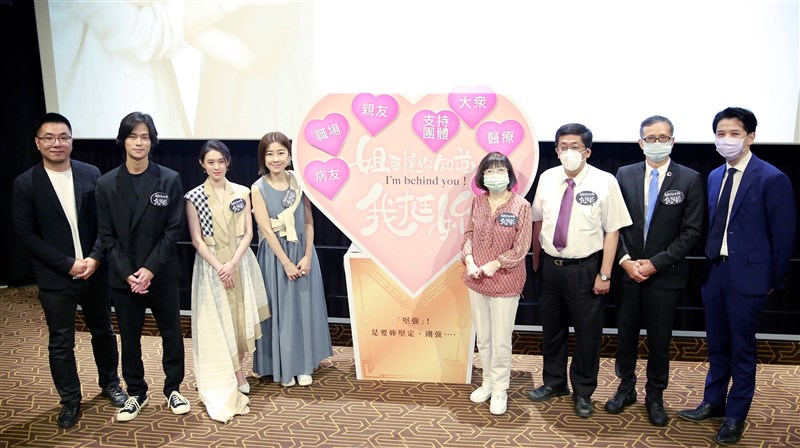 響應1012世界關節炎日 《姐要讓妳知道,我挺妳》病友故事微電影首映,呼籲大眾一同給予病友關愛與包容。左起為導演施祥德、演員夏騰宏、演員邱偲琹、演員李維維、類風溼性關節炎之友協會理事長包素娟、風溼病醫學會理事長蔡長祐、中外製藥董事長陳榮華、中外製藥產品經理林家正。圖/禾閎廣告