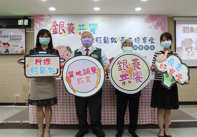 重陽節前夕,衛福部國健署舉辦記者會,署長吳昭軍(左二)希望長輩透過與親人一起動手做料理,增進彼此情感,營造餐桌「銀養共饗」美好時光。圖/國健署