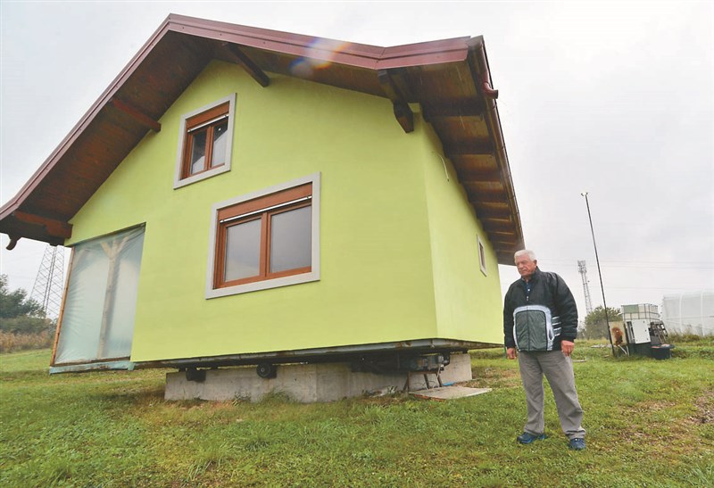 【本報綜合外電報導】波士尼亞一名七十二歲男子庫西契(Vojin Kusic)用獨特方式完成寵妻壯舉,為滿足妻子的需求,他大費周章蓋了棟可以三百六十度旋轉的房子,能藉由旋轉讓屋內的人看到四面八方的玉米田、農場、森林和河流等戶外景觀,還可隨心所欲「轉換風水」。