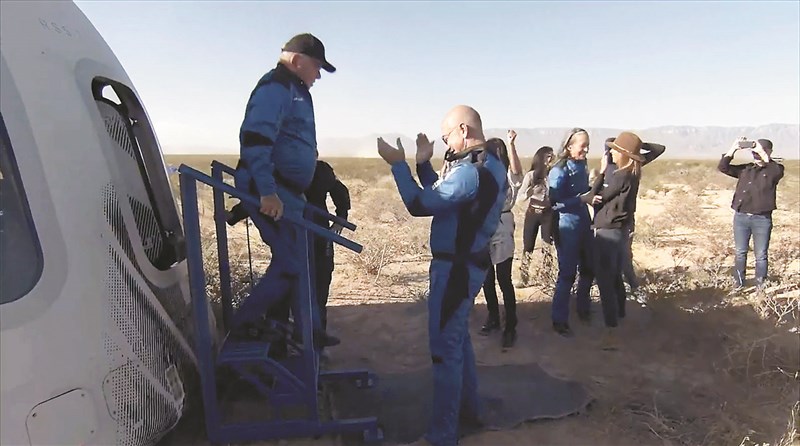 【本報綜合外電報導】90歲的美國演員威廉沙特納曾在《星際迷航記》中,飾演企業號星艦寇克船長,13日搭乘亞馬遜創辦人貝佐斯旗下太空事業「藍色起源」的太空船,成功飛上太空,創下最年長上太空紀錄。