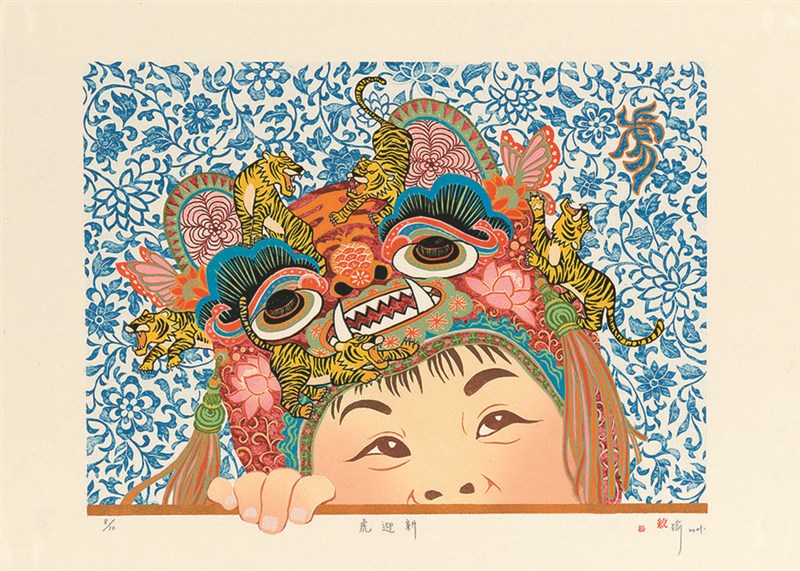 【記者曹麗蕙台北報導】「中華民國第三十七屆版印年畫徵選活動」得獎名單公布,評審團表示,今年入選作品印工都很精緻,已將台灣版印年畫徵選塑造推陳出新的風格,首獎作品六件,也給人耳目一新的驚豔感,其中林淑芬〈福虎生豐〉凸版版畫,利用台灣苗栗在地景物作為吉祥象徵,翻轉傳統年畫的節慶符號意涵。