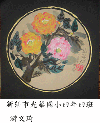 (1)佑柔畫的山茶花,看起來好艷麗!一朵朵圓形的山茶花,正