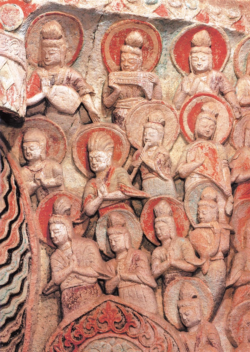 雲岡石窟第6窟西壁上層中部龕北側供養天(局部)北魏/山西大同