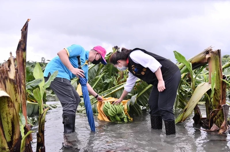颱風圓規造成嚴重農損,花蓮縣長徐榛蔚日前還曾前往壽豐鄉豐田地區,和蕉農檢視香蕉倒伏的情況。圖/花蓮縣政府提供