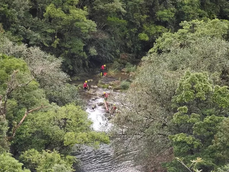 新北市雙溪區虎豹潭釀4死2失蹤悲劇,新北市長侯友宜今(18)天說,市府已在第一時間封鎖落水點的「梳子壩」。圖/新北市消防局提供