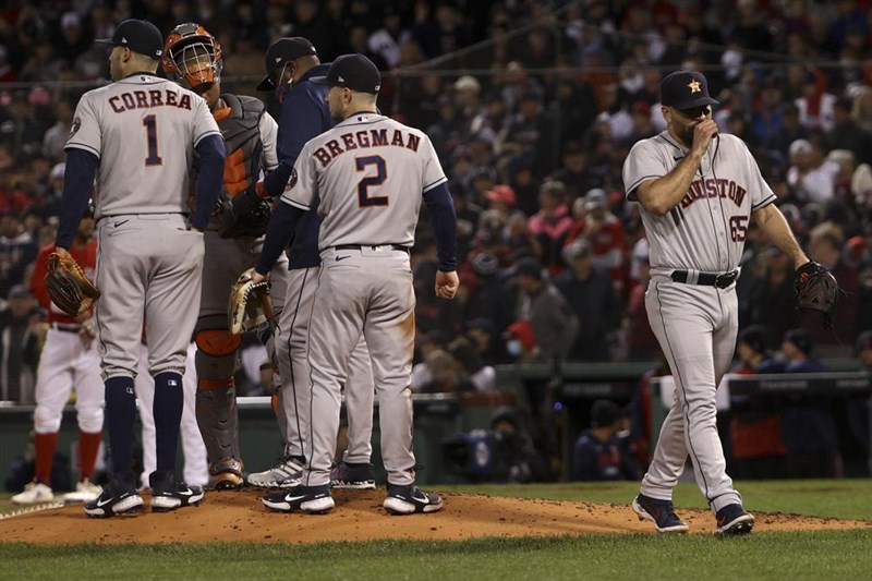 太空人投手群在美聯冠軍系列賽前三場,完全壓制不住對手紅襪,被敵隊打線狂轟25分。圖/美聯社