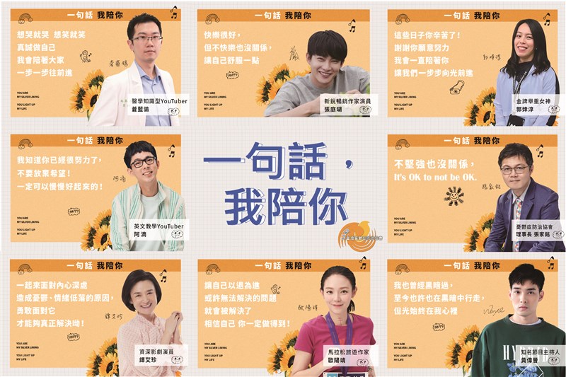 「關鍵的一句話,有時就能改變憂友的生命,讓憂友感受支持的力量,有助提升治療意願、重返健康。」台灣憂鬱症防治協會在心理健康月期間,邀請7位名人包括郭婞淳、阿滴、歐陽靖、譚艾珍、張庭瑚、蒼藍鴿、黃偉晉,以自身經驗分享給憂友一句話。希望透過簡短的「一句話」,帶給憂友們陪伴、支持與力量,一起突破生命歷程的黑暗時光。