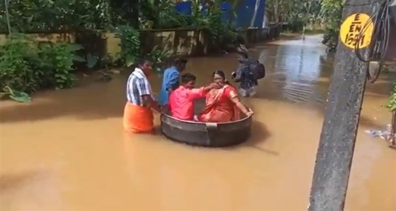 【本報綜合外電報導】印度南部喀拉拉邦(Kerala)近日遭受豪雨破壞,不過一對夫妻為了兩人的婚禮「風雨無阻」、竟坐進一個大鍋子一路穿過被洪水淹沒的城鎮街道,最終抵達寺廟順利完婚。