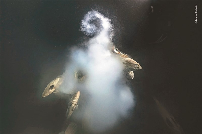 【本報綜合外電報導】由英國自然史博物館(Natural History Museum)所舉辦的「年度野生動物攝影師大賽」(Wildlife Photographer of the Year)是野生動物攝影界的年度盛事,每年都有數萬件投稿作品,今年的評選結果出爐,一隻雌性清水石斑魚釋放大量卵之際,數尾雄性魚立即排出精子,法國攝影師巴列斯塔(Laurent Ballesta)拍下這體外受精「爆炸般」一幕,以此奪下首獎。