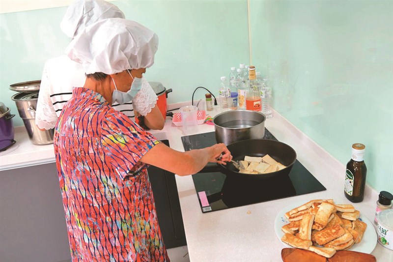 烹飪組的長輩戴上白帽,切胡蘿蔔或煎板豆腐,在C據點工作人員協助下煮出三菜一湯。七十三歲陳奶奶說,煎豆腐她很拿手,自從子女成家立業都搬出去,很少機會展露廚藝,到C據點竟有機會作菜,重現很多人吃她煮的菜的情景,讓她覺得「自己還有路用」。