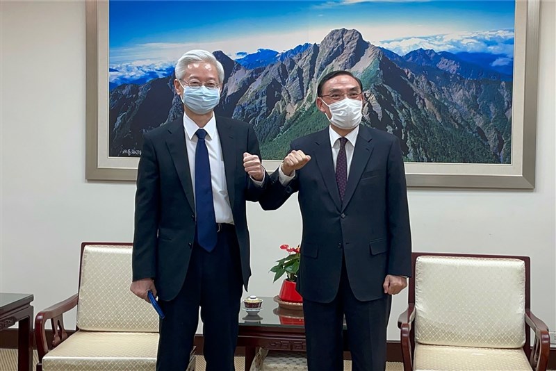法務部長蔡清祥(右)司法院祕書長林輝煌(左)會談,經6個多小時挑燈夜戰,已達成精障犯罪「暫行安置」 共識。圖/中央社