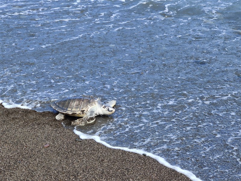 海管處表示,去年5月就曾與海巡署、中華鯨豚協會及獸醫共同救治一隻擱淺於觀音海灘的小抹香鯨,並成功在基隆外海完成野放,這次再度成功救援受傷擱淺小欖蠵龜,非常令人感動。