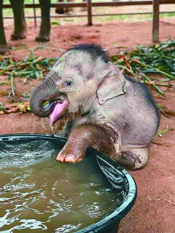 【本報綜合外電報導】四個月大的小象「查巴」(Chaba)出生在泰國大象營地,她的母親「布馬」(BunMa)被迫每天表演,做馬戲表演來招待遊客,致使牠一直處於孤獨之中。泰國救助大象基金會(SEF)團隊得知大象的悲慘處境後前往營救。