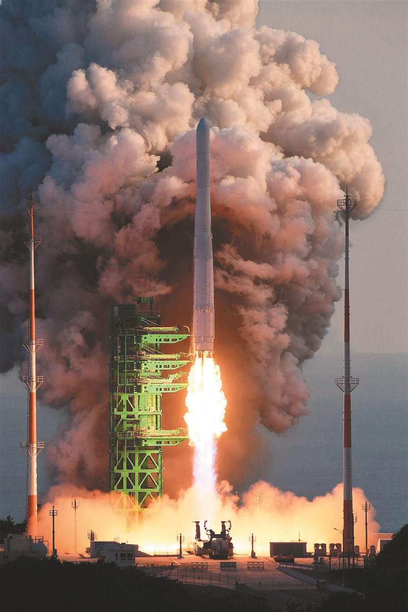 南韓首架「純國產」火箭「世界號」於南韓當地時間21日下午5時,全羅南道高興郡羅老宇宙中心發射升空。圖/美聯社