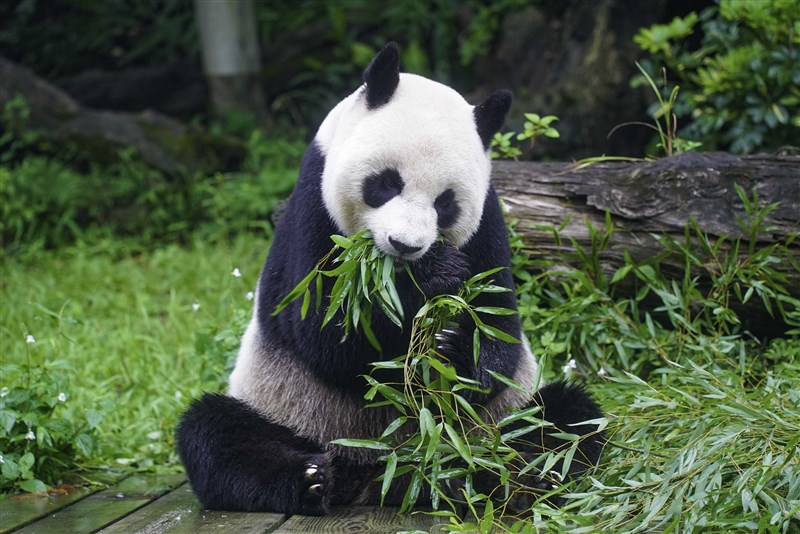 大貓熊肚子餓了啃竹子。圖/台北市立動物園提供