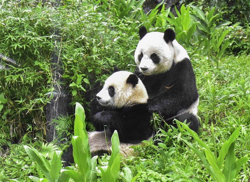 大貓熊們正大啖美味的茄苳樹果實。圖/台北市立動物園提供