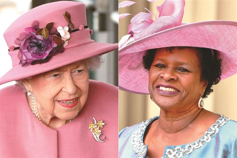 巴貝多選出第一任總統梅森(右),英國女王伊麗莎白二世(左)不再是巴貝多的國家元首。圖/法新社