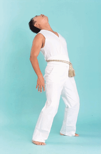 2. 兩腳分開站立,一面吸氣,一面將身體向後仰。
