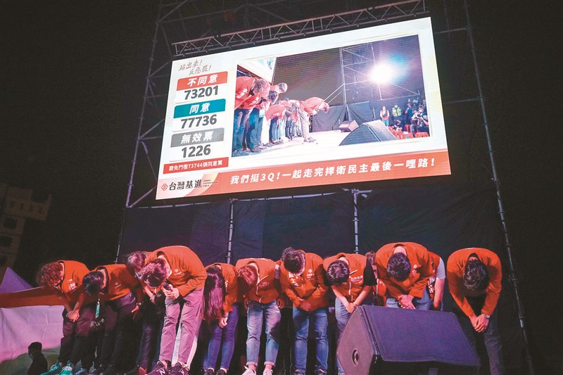 陳柏惟服務處昨晚自行宣布罷免通過,承認努力不夠,感謝大家協助與支持,深深一鞠躬向所有支持者致意。 圖/中央社