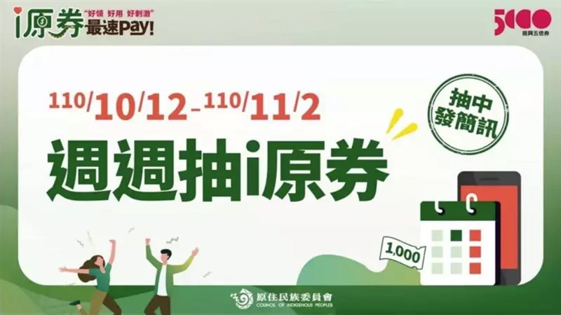 1000元i原券抽出2萬5千份,抽籤結果今(26)日下午3時30分出爐。圖/原民會提供