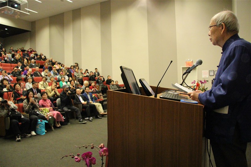 王鼎鈞(右)九十回顧座談會講話。圖/公益信託星雲大師教育基金提供
