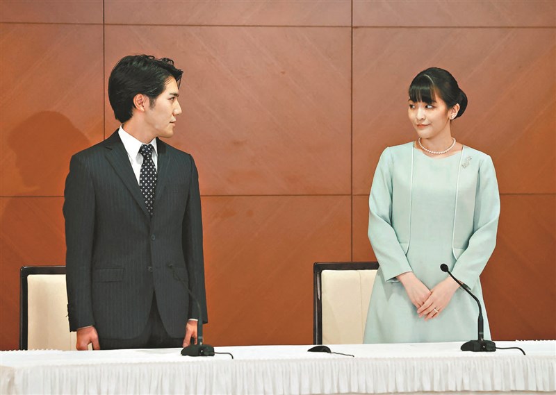 日本真子公主(右)二十六日與大學同學小室圭結婚,依法脫離皇室成為平民。圖/法新社