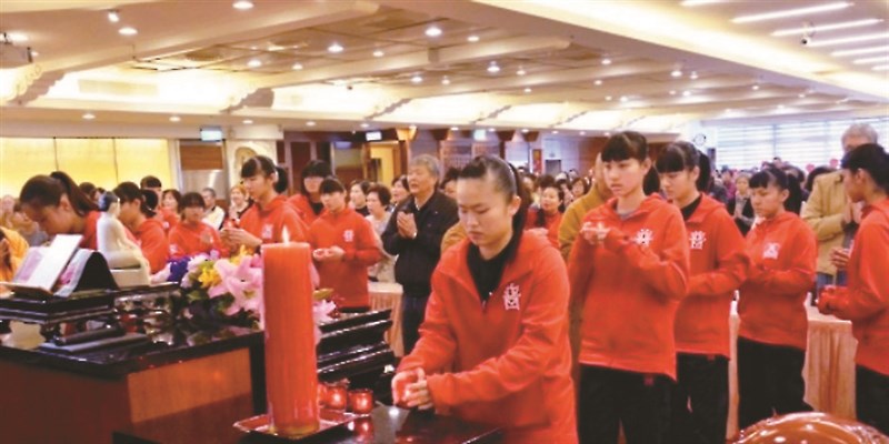 普門中學的女籃隊員出賽前,在普門寺獻燈祈福。圖╱資料照片