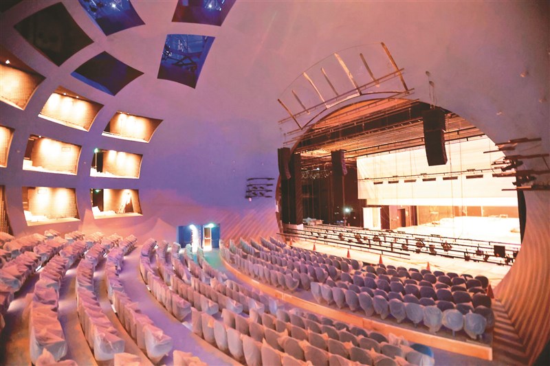 延宕多年的台北表演藝術中心終於已近收尾階段。外觀最吸睛的建築主體外牆的帷幕牆系統,由1200片自西班牙進口,一片高5公尺寬1.2公尺的曲面玻璃所組成。球體建築為「球劇場」,可容納800名觀眾,還有1500席的大劇院、500到800席的多形式藍盒子開放式劇場,還可串成2300席「超級大劇場」。預計明年3、4月起試營運。圖/蘇健忠