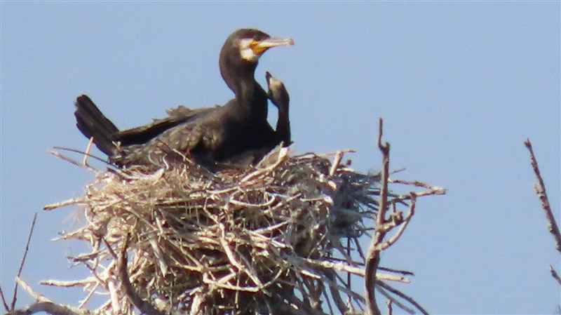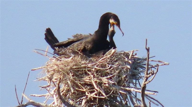 冬候鳥先鋒部隊一對鸕鶿夫婦上月樹上築巢孵蛋,鸕鶿寶寶破殼誕生。圖/蘇家弘提供