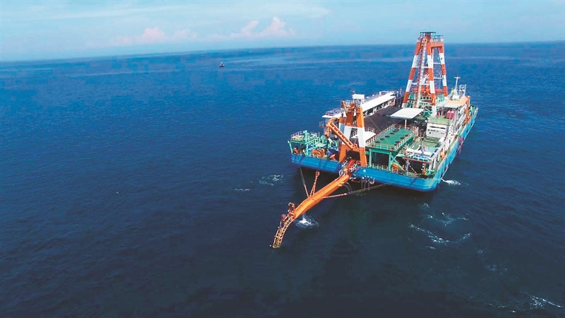 台電台澎海纜昨正式加入運轉,象徵「台澎電網」成形,圖為工作船鋪設海底電纜作業。圖/中央社