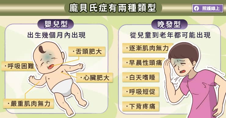 龐貝氏症破壞肌肉 會讓心臟無力、呼吸衰竭 |2021.11.01 語音朗讀 1056觀看次 字級 大 中 小 龐貝氏症(Pompe Disease)屬自體隱性遺傳疾病,如沒及時治療,患者將漸漸無力呼吸,最後長期使用呼吸器維生。圖/unsplash 【本報台北訊】「醫師,我先生很會打呼,不過最近他的打呼聲都會中斷,停頓好幾秒才又開始呼吸。」陳女士仔細描述先生睡覺的狀況,「早上起床的時候,他都會抱怨頭痛,而且很容易打瞌睡。」「還有其他不舒服嗎?」醫師問。「他的體力也有變差,走路、爬樓梯都比較慢,經常肌肉痠痛,偶而還會跌倒。」陳女士說,「有醫師覺得不對勁,請我們進一步檢查。」肌肉疼痛、體力變差、睡眠呼吸中止等症狀看似無關,但是可能源自同樣的問題,林口長庚紀念醫院神經內科醫師黃錦章教授表示,「龐貝氏症」是一種遺傳性代謝疾病,會讓全身肌肉細胞遭到破壞,而愈來愈沒有力氣。如果沒有及時接受治療,患者將漸漸無力呼吸,愈來愈喘,最後會需要長期使用呼吸器維生。圖/unsplash什麼是龐貝氏症?龐貝氏症(Pompe Disease)是種代謝性疾病,又稱為及肝醣儲積症第二型或酸性麥芽糖酵素缺乏症,屬自體隱性遺傳疾病。由於第17對染色體上的GAA基因有缺陷,使患者體內缺乏GAA酵素,而無法分解肝醣。在台灣,新生兒的發生率大概5萬分之一,晚發型龐貝氏症的發生率約為2萬分之1。「我們的身體會將肝醣儲存在肌肉細胞裡,等到有需要的時候,細胞裡的溶小體會將肝醣分解為葡萄糖。」黃錦章教授解釋,「缺乏GAA酵素時,肝醣會大量堆積在溶小體內,而漸漸對肌肉細胞造成傷害,使患者肌肉愈來愈無力,逐漸進展到心臟無力、呼吸衰竭。」龐貝氏症有兩種類型龐貝氏症可分成嬰兒型與晚發型,嬰兒型龐貝氏症在出生幾個月便會出現症狀,病程進展較快,黃錦章教授解釋,常見表現包括肌肉無力、心臟肥大、肝臟肥大、舌頭肥大、呼吸困難等,多數患童會在1~2年內死亡。晚發型龐貝氏症,是超過2歲以上才發病,從兒童到老年都可能發病,病程進展較慢,黃錦章教授說,通常是從軀幹、下肢開始出現肌肉疼痛和肌肉無力,活動時比較疲倦,然後有吞嚥困難、呼吸較喘,部分患者有睡眠障礙。晚發型龐貝氏症的診斷比較困難,從發病到確定診斷大概6~12年,黃錦章教授說,因為龐貝氏症較罕見,肌肉無力的患者不容易及時確診,而出現永久性傷害。根據研究,愈晚被診斷、愈晚使用藥物處理,就有更嚴重的永久性傷害,患者可能會需要長期仰賴呼吸器維生。遇到哪些狀況要想到龐貝氏症呢?「例如不明肌肉痠痛、行動走路較無力、常常跌倒、走路的模式改變、沒有辦法爬樓梯,或是脊椎側彎等。」黃錦章教授提醒,「龐貝氏症患者常有呼吸中止症,睡覺的時候打呼聲會中斷,過一陣子才又繼續。呼吸中止症會造成患者缺氧,可能在起床的時候感到頭痛,因為睡眠品質很差,白天容易嗜睡、精神不繼。患者的腸胃道肌肉也受到影響,可能造成進食、吞嚥困難。」「我們也可以請患者做6分鐘行走測試,看看他能夠在6分鐘內走多遠。」黃錦章教授說,「並透過病史詢問,能夠了解症狀發生的時間有多久。」懷疑龐貝氏症時,可以抽血檢查。黃錦章教授說,現在已有快速簡便的診斷方法,透過抽血滴在濾紙片上檢查,評估GAA酵素的狀況。如果發現異常,便會進一步做基因方面的檢查,以確定是否為龐貝氏症。確診為龐貝氏症怎麼辦?肌肉遭到破壞後,肌耐力會變差,且可能出現攣縮,除定期酵素介入外,復健科醫師、物理治療師、職能治療師也會根據病況設計合適的運動處方,幫助維持肌力、心肺功能,必要時也可以使用各種輔具。由於龐貝氏症患者的咀嚼、吞嚥、消化功能都會受到影響,務必留意營養補充,每天要攝取足夠的蛋白質、卡路里、維生素,以免因為營養不良而愈來愈虛弱。當呼吸肌失能時,可以使用呼吸器來輔助,「龐貝氏症就跟高血壓、糖尿病一樣,需要長期治療控制。」黃錦章教授強調,「早期診斷、早期介入,非常關鍵。從這幾年的經驗看起來,目前的臨床處置能夠延緩惡化的時間,維持身體機能,讓患者擁有相對正常的生活」貼心小提醒晚發型龐貝氏症的初期症狀較不明顯,大家要提高警覺,黃錦章教授說,當脊椎肌肉受影響時,患者的頭會下垂;當下肢肌肉受影響時,患者可能在蹲馬桶後,站不太起來;當軀幹肌肉受影響時,患者就不太能做仰臥起坐,需要先側身,用手臂的力量把身體撐起來。如果有觀察到這方面的問題時,可以至神經內科就診,黃錦章教授說,可能導致肌肉無力的原因很多,需要仔細地鑑別診斷,才能及早發現、及早治療!本文由「照護線上https://www.careonline.com.tw/」授權轉載。原文出處:https://www.careonline.com.tw/2021/10/pompe-disease.html原文標題:肌肉疼痛、走路變慢、越來越喘,破壞全身肌肉的龐貝氏症,醫師圖文詳解 前一篇文章 改變現狀!新上國小親師投票可以8點到校 下一篇文章 台灣疫情趨緩 阿里山林鐵2日全線恢復行駛 熱門新聞 01【閃文集】 駝峰天使2025.11.0402台中新社花海 重現經典卡通2025.11.0603魏碧糈 用茶講心教品德2025.11.0104【墨香流韻】一筆清香 一念無塵 梅適情2025.11.0205【營養專欄】破解糖尿病飲食4大迷思2025.11.0106【修行在人間】佛心的慈視62025.11.0207【看人間】老人應要活得快樂,而不是活得合理2025.11.0408社論--做自己的數位主人2025.11.0209盧世祥 以金繕工藝圓滿人間愛2025.11.0110南天寺