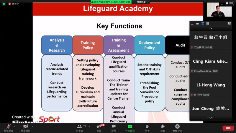新加坡體育理事會協理Chia Ser Kian先生說明新加坡救生員訓練現況。圖/體育署提供
