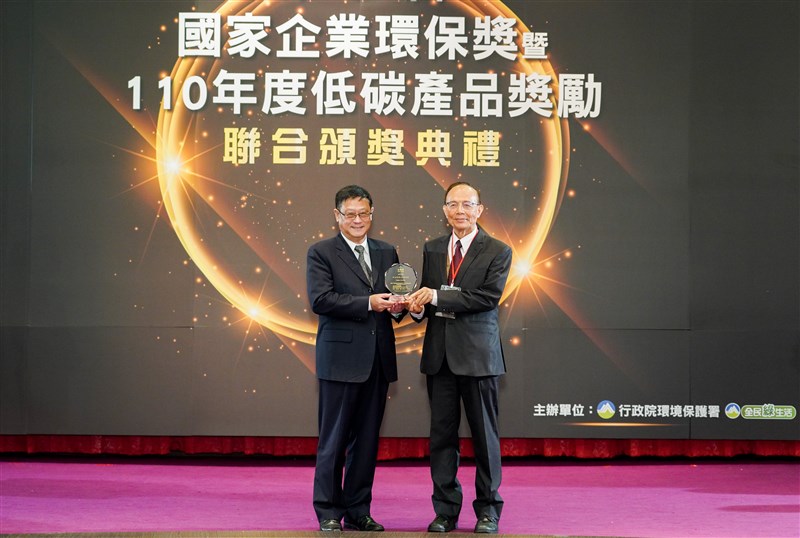 南華大學連續三年榮獲國家企業環保獎「金級獎」,右為林聰明校長。圖/南華大學提供