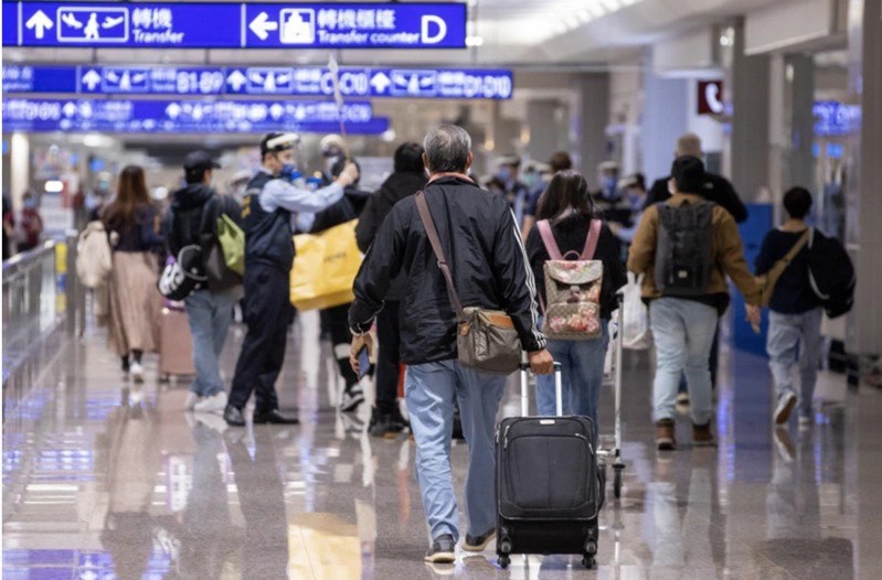 春節返鄉檢疫放寬成「10+4」,卻導致防疫旅館訂房大亂。圖為桃機入境旅客前往檢疫申報。圖/資料照片