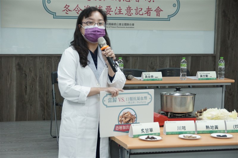新北市藥師公會中藥發展委員會主委林宸汝提醒,進行食補前,正在服用西藥的民眾,最好事先諮詢藥師。圖/藥師全聯會