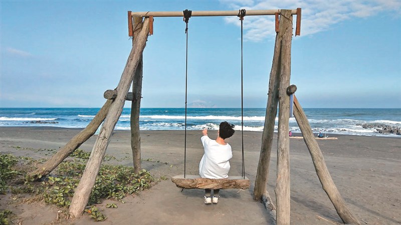 許育豪跟夥伴在宜蘭壯圍東港村廍後社區的海景鞦韆,把人流帶進村落。