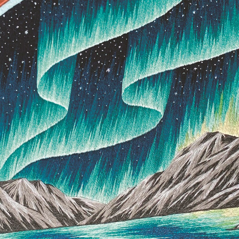 米羅諾娃用刺繡,展現出燦爛的北極光。 圖/取自網路