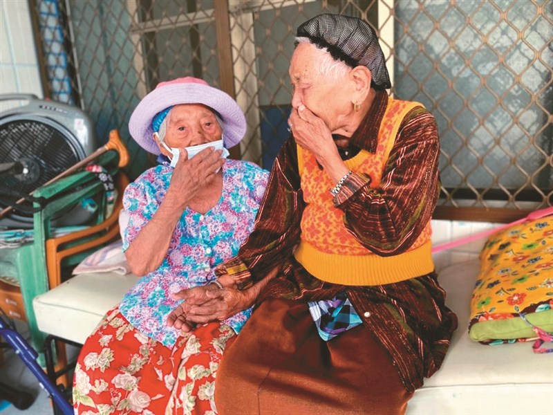 小玉奶奶(左)與阿詩奶奶在居服員幫助下碰面,喜極而泣。圖/介惠基金會提供