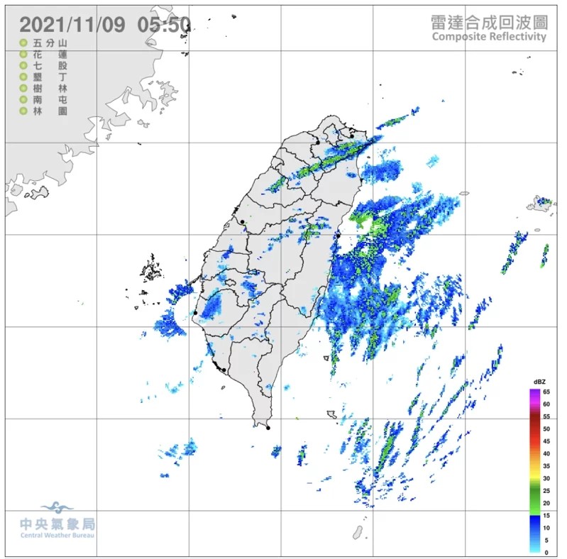 吳德榮提到,今晨4時30分紅外線色調強化雲圖顯示,台灣上空仍有逐漸消散的中層雲系,東海、北部海面布滿強冷空氣流經洋面產生的「雲街」。4時30分雷達回波合成圖顯示,台灣上空的中層雲系及東部海面隱藏於其下的「雲街」,回波皆很微弱。