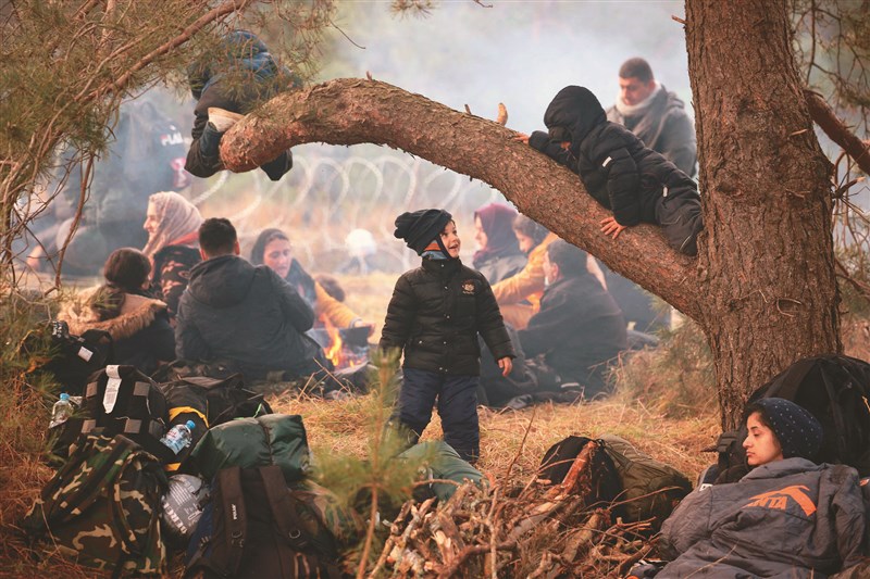 數以百計中東難民,八日聚集在波蘭與白俄邊境格朗德地區,準備經由波蘭抵達最終目的地德國。波蘭當局說,這是白俄羅斯的敵對行動。圖/法新社