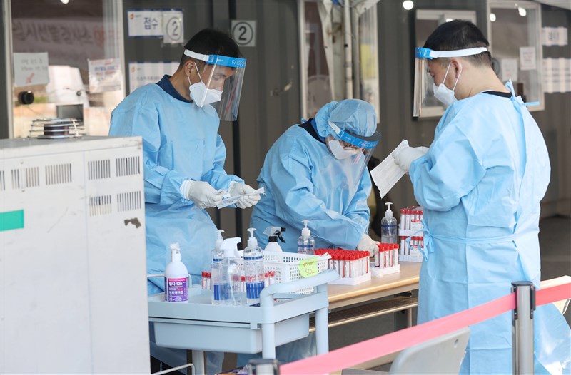 南韓新冠急重症病例人數10日達到460例,再創歷史最高紀錄,圖為首爾一間醫院外的病毒檢測站。圖╱取自網路