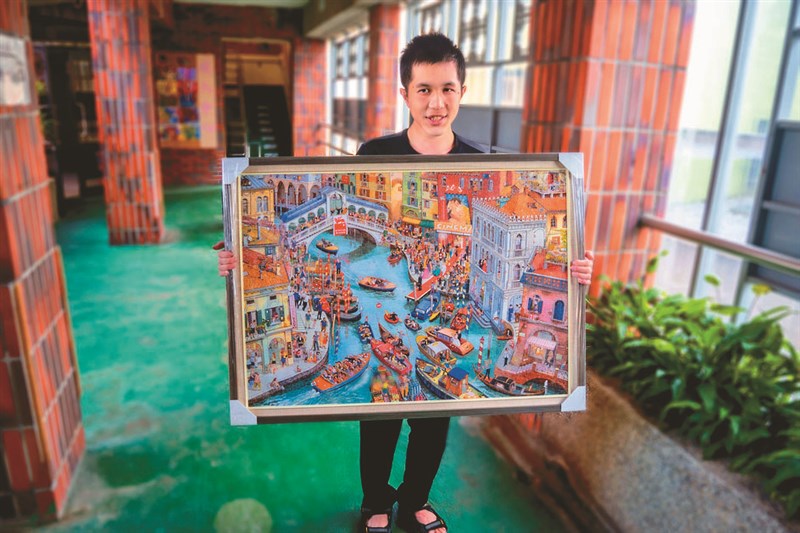 屏東勝利之家的自閉症青年林軒丞,具備達人等級拼圖能力,盼「代客拼圖」來發揮才能。圖/中央社